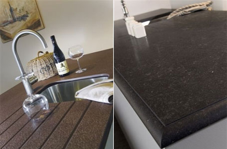 Cette pierre composite est constitué de résines et de granulats de granite ou de quartz. Ces différents produits sont liés par un procédé unique pour former une matière super résistante, comparable au diamant.